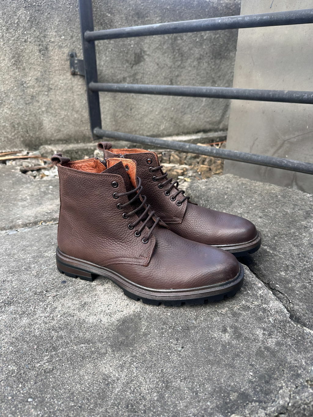 Borcegos de capellada y forrados 100% en cuero croco color chocolate, cierre interno y planta de goma.