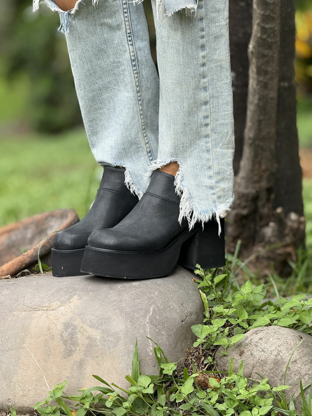 Bota lisa 100% de cuero color negro con taco y plataforma.