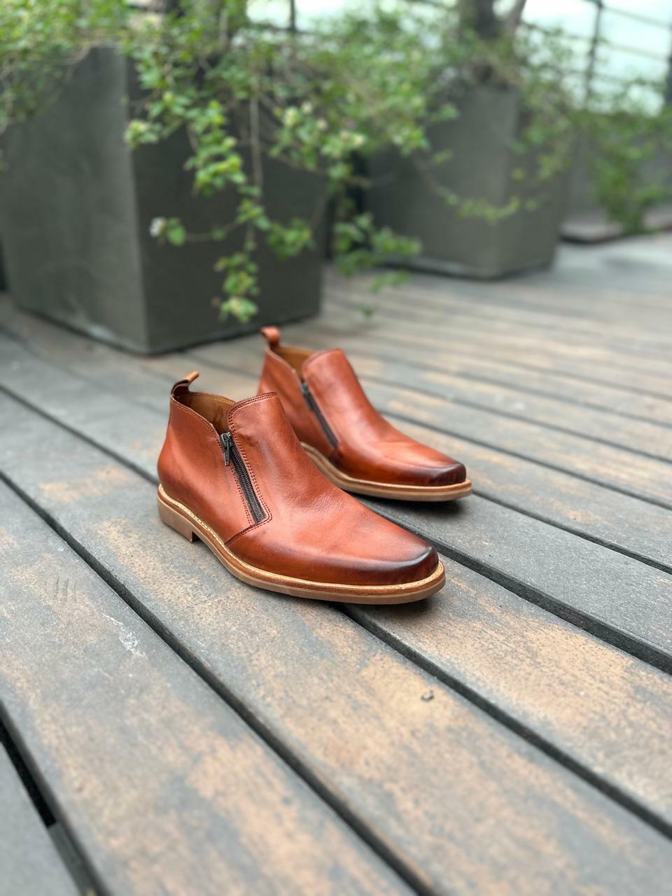 Zapatillas de capellada y forradas 100% con cuero color suela y planta de goma FEBO natural.