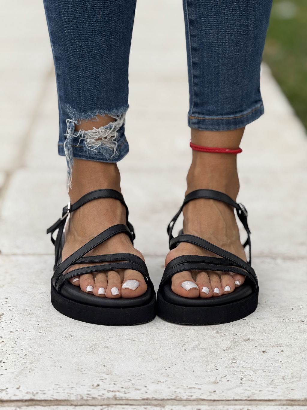 Sandalia con tiras finas y hebilla regulable con pulsera al talon.