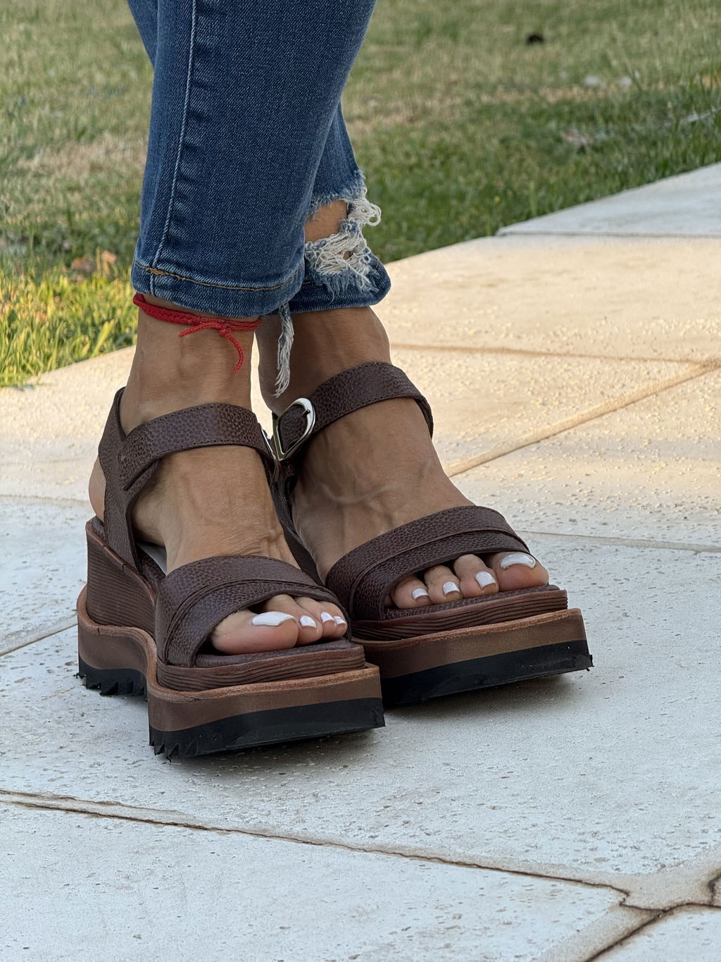 Sandalias clasicas 100% de cuero genuino color chocolate , con plataforma de goma y detalle negro con antideslizante. !Super livianos!.