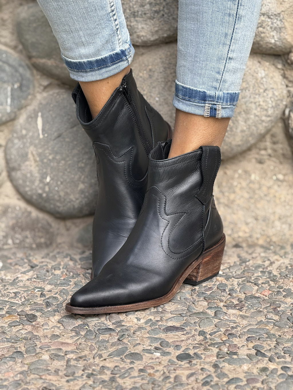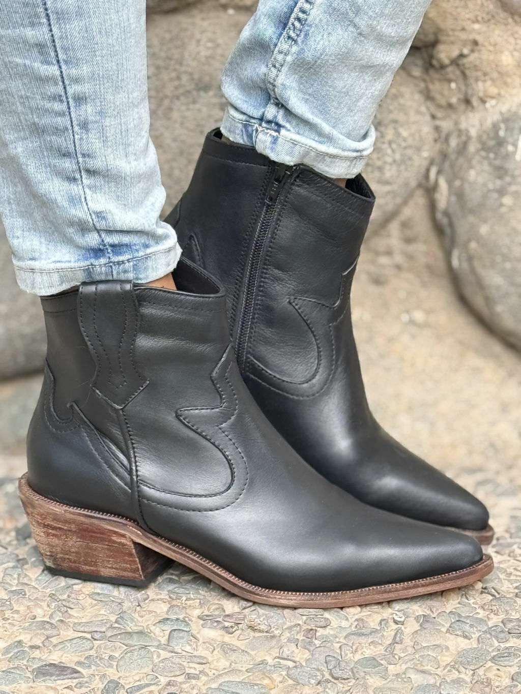 Bota texana clasica de caña baja 100% de cuero color negro.