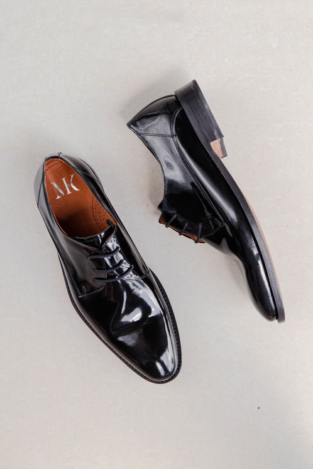 Zapatos de vestir premium 100% de charol genuino negro y fondo de suela al tono.