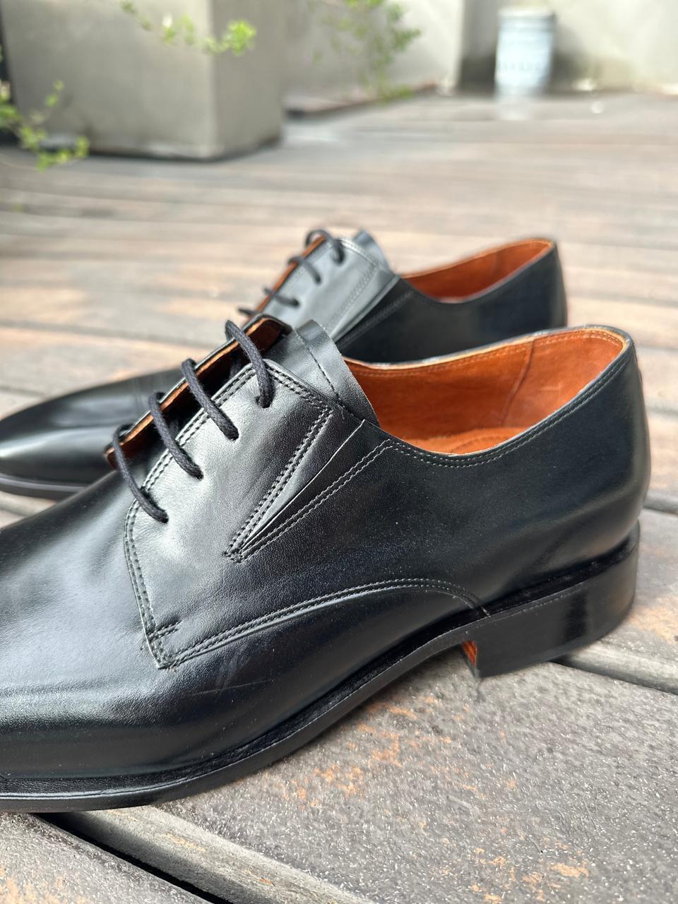 Zapatos de vestir premium 100% de cuero genuino color negro con empeine elastizado y fondo de suela al tono.