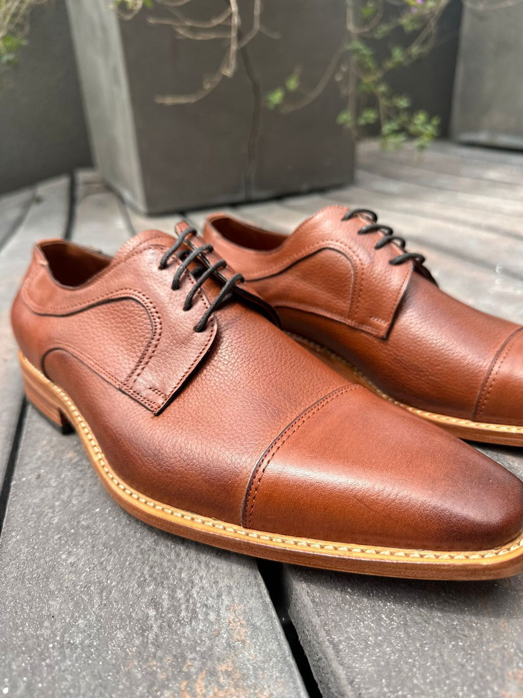 Zapatos de vestir premium 100% de cuero genuino color suela liso y graneado con un fondo de suela natural.